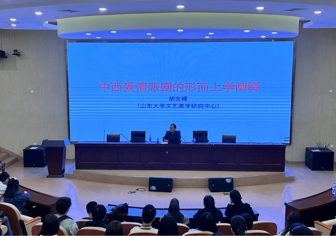 4月12日,山东大学特聘教授、二级教授、博士生导师胡友峰应邀为suncitygroup太阳集团网站师生作题为《中西爱情悲剧的形而上学阐释》学术报告。报告会在滨湖校区学术报告厅举行,suncitygroup太阳集团网站师生150余人参加。suncitygroup太阳集团网站院长何旺生主持报告会。