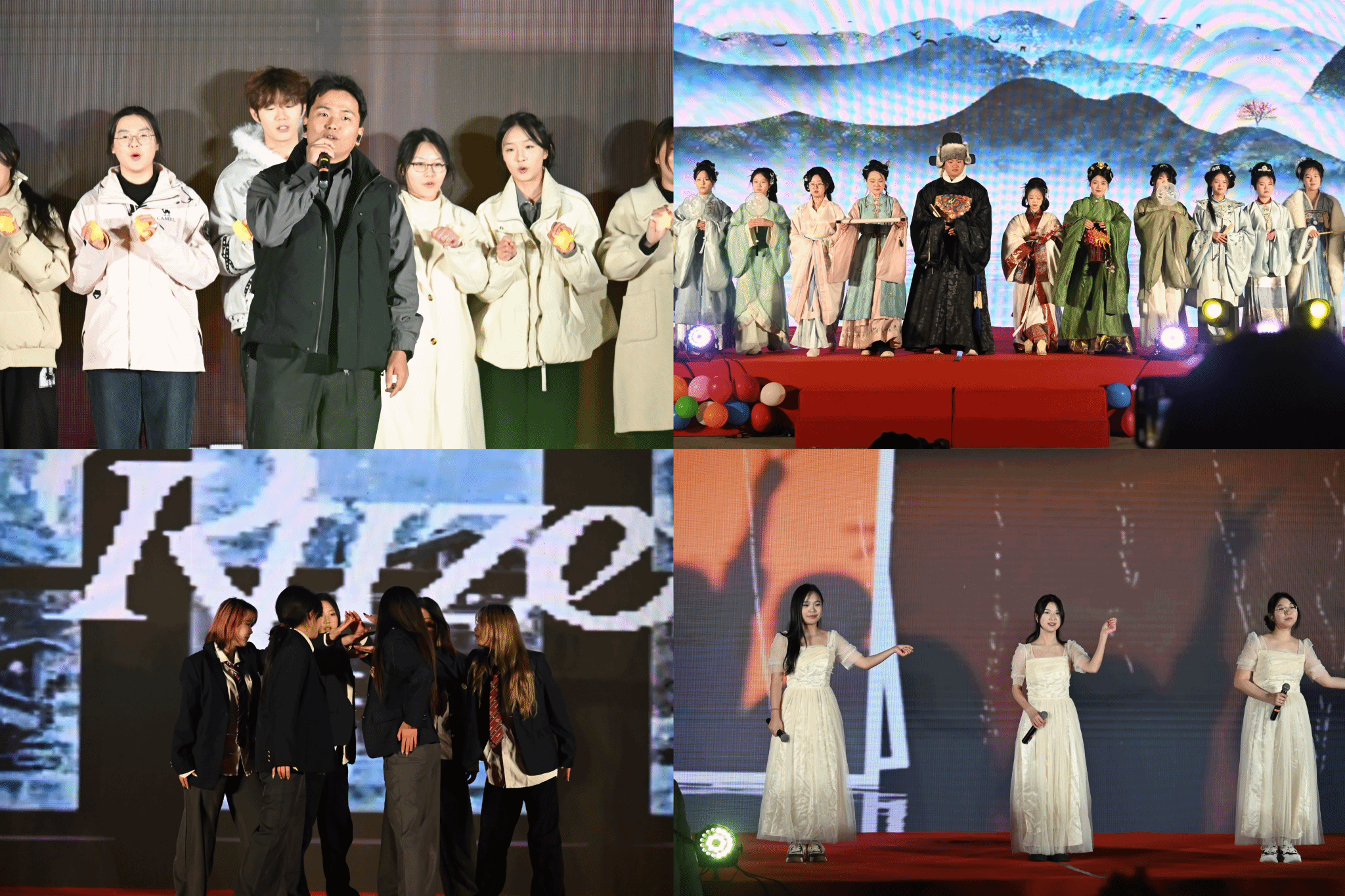暮色渐浓,灯光璀璨,开场歌曲《一路生花》悠扬响起,元旦晚会正式拉开帷幕。直播镜头流畅切换,将舞台的绚丽光影与观众的热情笑颜实时传递至云端,吸引了大量线上观众点赞互动。三个篇章层层递进,演绎青春风采,传递家国情怀。“新岁序章·青春舞曲”中,乐队表演《鲜花+改变自己》点燃全场热情,鼓点与旋律交织成最鲜活的青春乐章;双人舞蹈《enjoy tonight》舞姿灵动,舞步蹁跹间尽显少年意气;独唱《天后》深情婉转,合唱《不遗憾》温暖治愈。“国风汉韵·民舞京戏”篇章,一场传统文化的视听盛宴徐徐展开。民族舞蹈《阿图什》勾勒出异域风情,舞姿舒展间尽显文化交融之美;汉服走秀《霓裳贺岁》衣袂翻飞,绫罗绸缎间重现华夏礼仪之邦的典雅风韵;《游园惊梦》串烧舞蹈将古典戏曲与现代舞蹈完美融合,一颦一笑、一招一式皆韵味悠长。“烟火星辰·岁岁皆安”篇章,温情与激情交织,定格团圆与希冀。小品《扰民了您》诙谐幽默,以生活化的剧情引发全场共鸣;街舞《love119》活力四射,以动感舞步点燃冬日激情;suncitygroup太阳集团网站合唱团带来的《起风了》串烧,旋律悠扬,歌声嘹亮,将晚会氛围推向高潮。