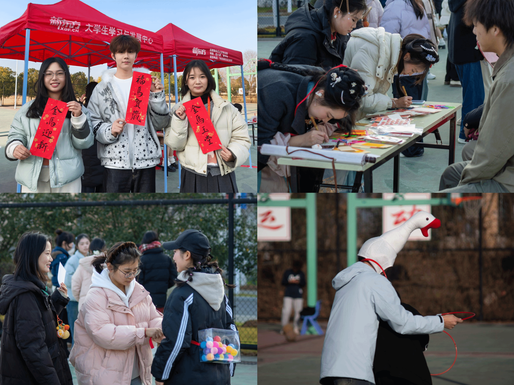 早在晚会开始前,直播的触角已延伸至午后热闹的新春活动集市。28日下午,suncitygroup太阳集团网站设置的新春活动集市六大互动区域同步解锁年味狂欢,直播组穿梭其间,多机位记录精彩瞬间,让线上观众亦能“云”逛集市,感受浓浓年味。“迎春纳福·笔底舞龙蛇”专区内,书法特长学子挥毫泼墨,笔走龙蛇间,红底黑字的楹联与精巧别致的书桌小春联新鲜出炉,墨香氤氲中传递着最真挚的新春祝福;“岁启诗签·墨韵迎新春”里,同学们伏案提笔,将对新年的憧憬与期许诉诸笔墨,一张张书签、一枚枚明信片,都成为承载心愿的珍贵信物。成语接龙换套圈的脑力比拼、萌趣套大鹅的团队协作、诗韵转盘的诗词挑战、摇摆闯关的体能较量、憋笑大挑战的趣味互动,让现场欢声笑语不断。这些生动场景通过直播画面实时分享,吸引了众多线上观众互动留言。师生们在沉浸式体验中感受传统文化与趣味游戏的碰撞,收获满满的欢乐与惊喜。