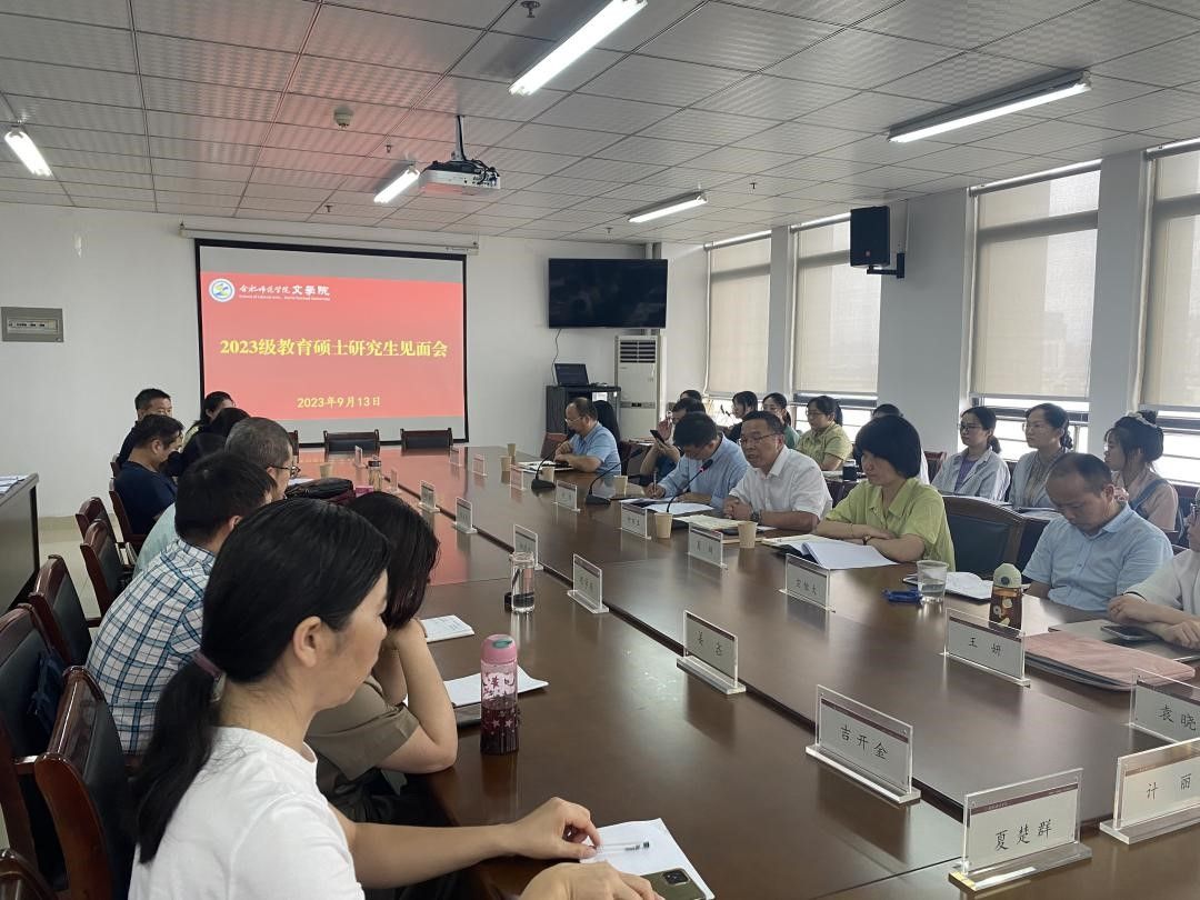 本网讯 金风送爽,桂子飘香。9月13日下午,suncitygroup太阳集团网站在锦绣校区行知楼802会议室举行了2023级教育硕士研究生师生见面会。suncitygroup太阳集团网站党委书记许锃、院长何旺生、党委副书记夏娟、副院长甘松和全体研究生导师、新生班主任、辅导员以及52名研究生新生参加见面会,见面会由许锃主持。