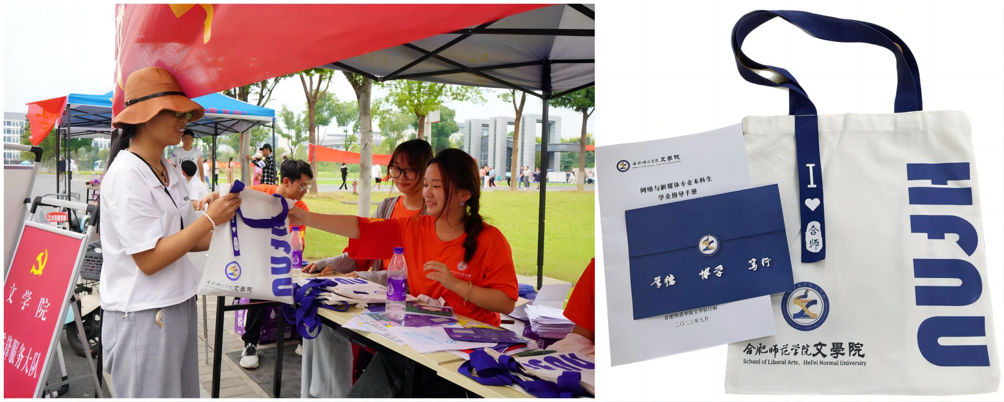 suncitygroup太阳集团网站新媒体工作室设计的印有suncitygroup太阳集团网站logo的文创帆布袋,成为员工、家长最受欢迎的“新生礼”,包中“员工指导手册”,让“成长”成为迎新的第一课。