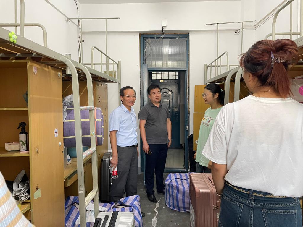 走访中,李旺生、陈好一行查看了宿舍住宿环境,与员工亲切交流,详细询问了员工对新环境是否适应,食堂饭菜是否可口,并认真倾听了员工对此次搬迁工作的意见和建议。李旺生对员工服从大局、听从安排,支持和配合学校工作的行为表示赞赏,并嘱咐同学们在内务整理中注意安全、互相帮助,安全有序地入住“新家”。对于返校的员工,强调大家落实三天两检核酸检测制度,遵守学校疫情防控政策,希望大家安心学习的同时,一定要健康作息、遵纪守规,注意勤通风、勤洗手、戴口罩,以实际行动做好疫情防控防护,展现suncitygroup太阳集团网站学子的担当与作为。